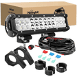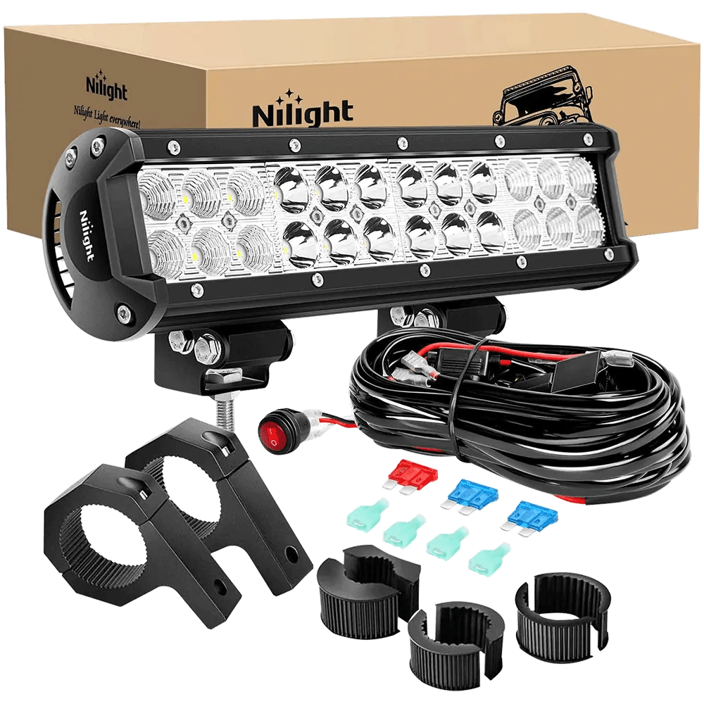 12 Inch 72W Double Row Spot Flood Led Light Bar | Horizontal Tube Clamp Mount | 12FT Wire 3Pin Switch