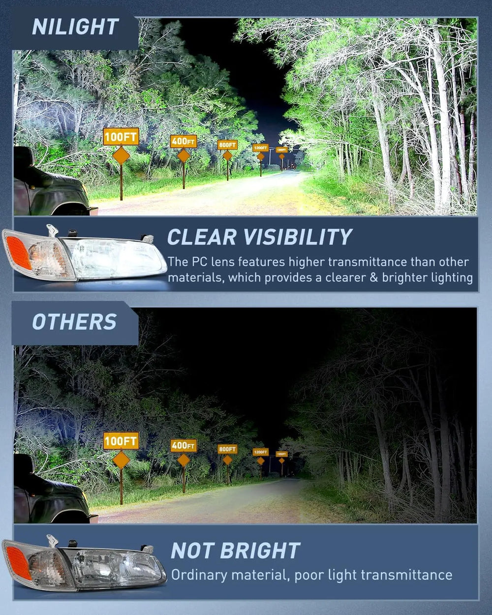 DOT Compliance and safe Driving: To ensure driving safety for you and the oncoming driving circumstance, DOT & SAE compliant. Our headlights provides clearer and further vision to see the wild animals, falling rocks or other obstacles at night. Reduce the possibility of danger.