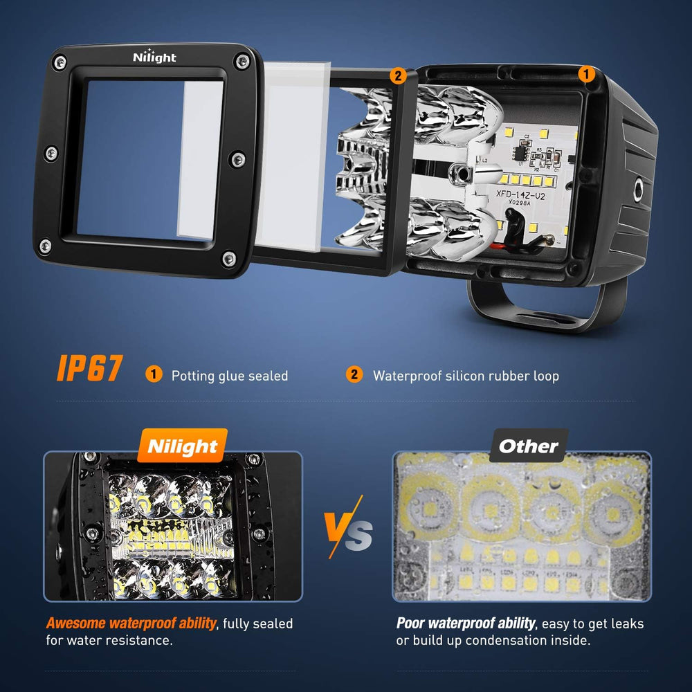 - Upgraded Combo Beam Type: Combining top and bottom 30°spot light and middle 170° flood light,the led cubes can greatly improve your visibility at broader and further distance, no more afraid of dark spot
