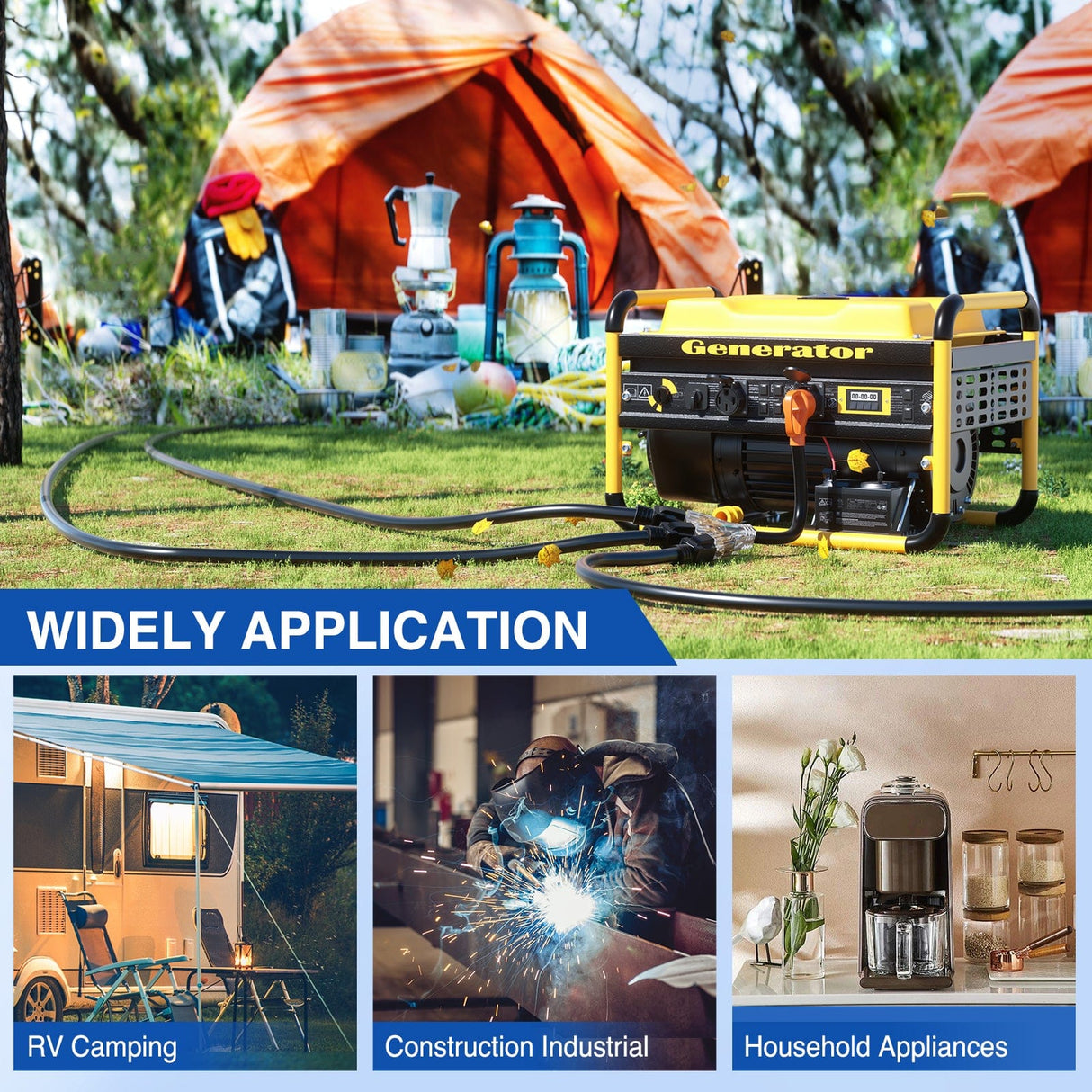 - 30 to (3) 15/20 Amp Adapter: Allows you to connect from a 30AMP external receptacle at RV Park or Campground to a 15 AMP or 20 AMP service in or out of your RV, which quickly supplies power for the refrigerator, air conditioner, microwave oven, roaster and other 110V household appliances. This distribution adapter power cord provides an easy way to gain 3X 5-15R/5-20R receptacles from a NEMA TT-30P outlet. Allows to go directly from 30 to 15/20 amp outlets. A good choice have on the road, it gives you a option to hook 3 applicances into one power outlet.