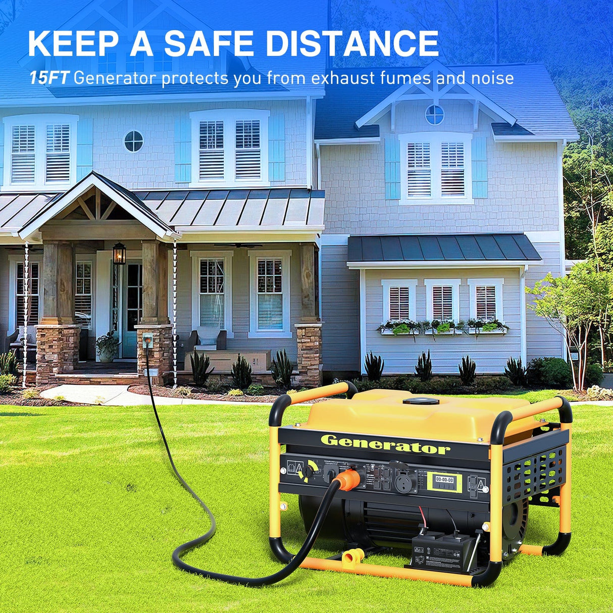 • Package includes: 30 Amp RV 15 FT generator extension cord, 30 Amp Generator Power Inlet Box, storage bag, adjustable cord organizer and installation guidance.