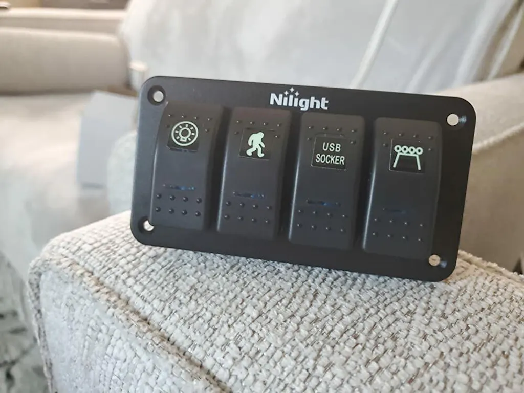 - 4 Gang rocker switch aluminum panel with DIY stickers and night glow stickers can customize these switches as your demands to remind you while using With pre-wired wiring harness for you to easily install in both 12V and 24V vehicles.