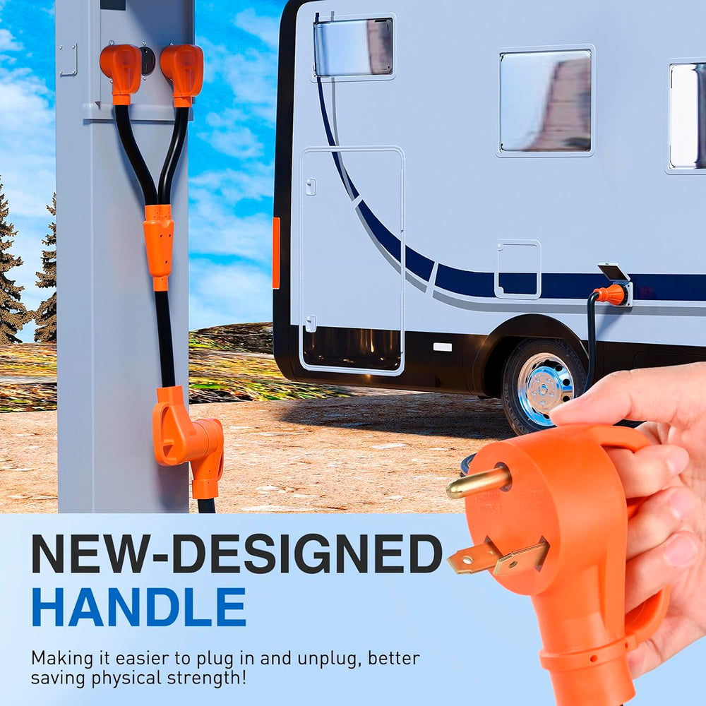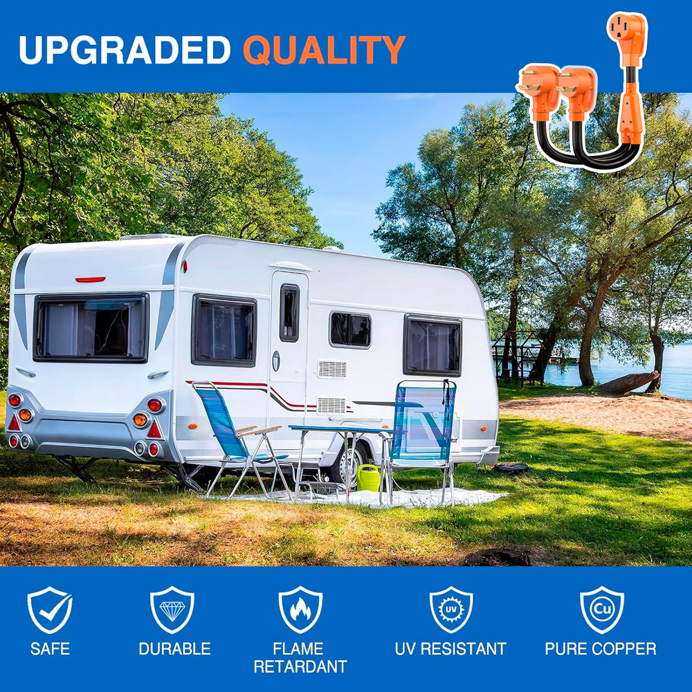- Package includes: (2)30AMP to 50AMP RV Y Splitter adapter cord