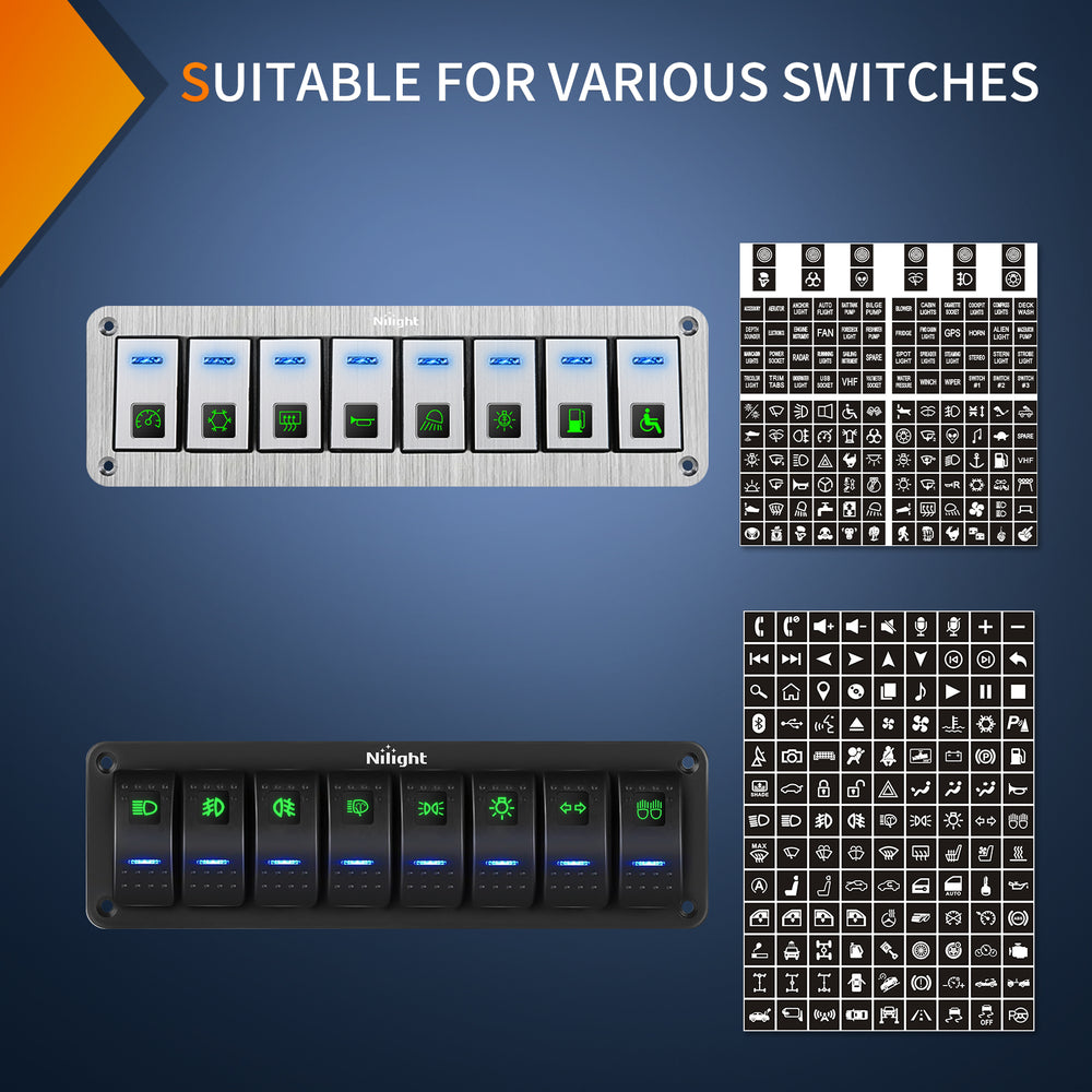 249PCS Night Glow Sticker for Rocker Switch Panel DIY Luminous Pattern Text Label in The Dark Toggle for Dashboard Boat RV Car Truck Vehicle