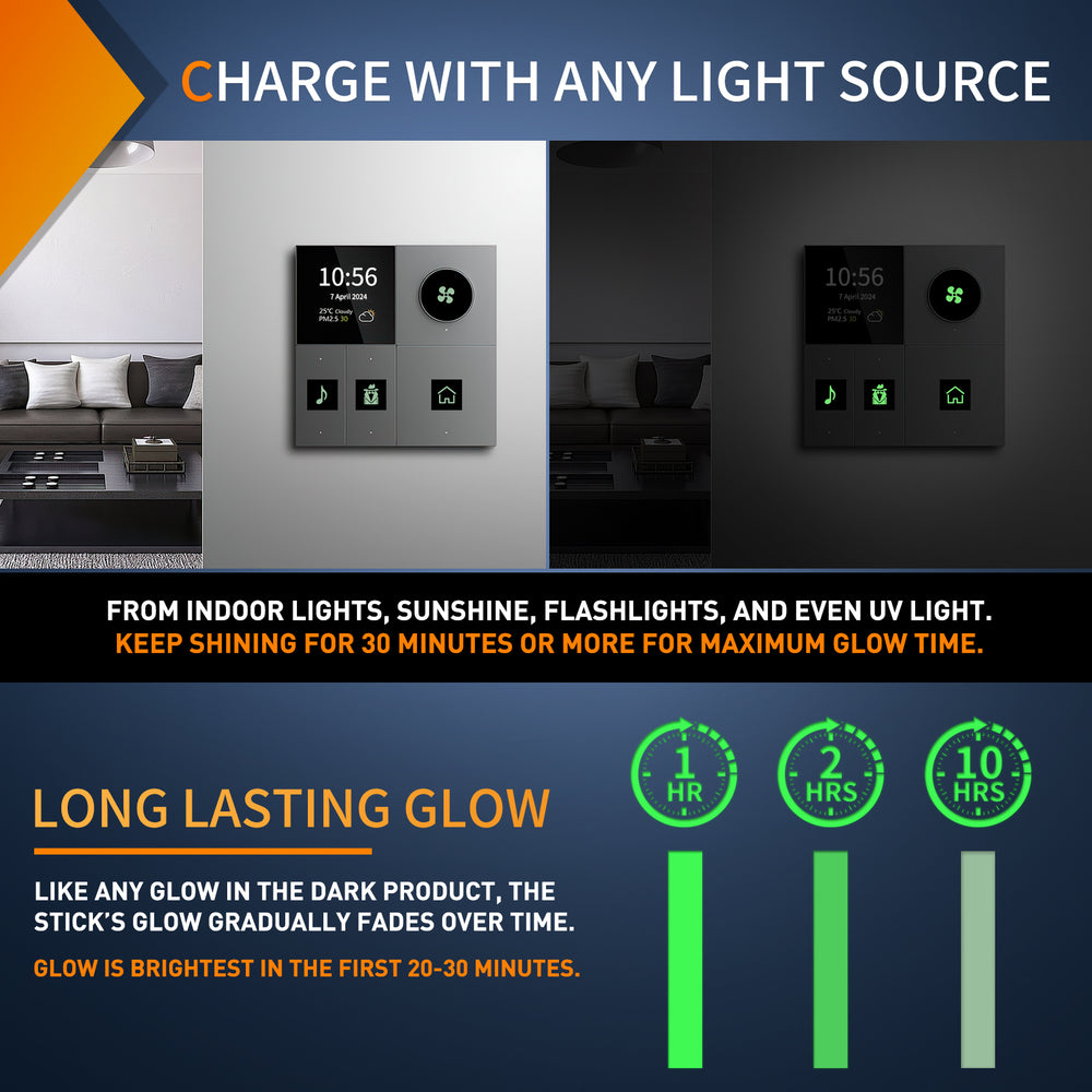 - Note: This product is light-absorbing luminous stickers, if a long time in the dark will not glow, you can use a flashlight for a while, can maintain a longer green light. With this sticker, even in the dark night, you can quickly find the switch button. Package Includes: 2 x DIY Night Glow Switch Stickers.