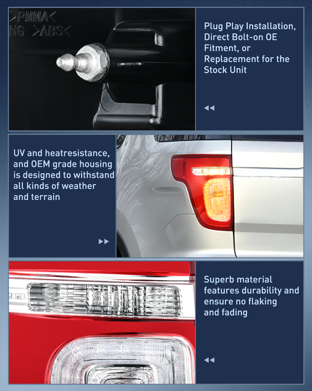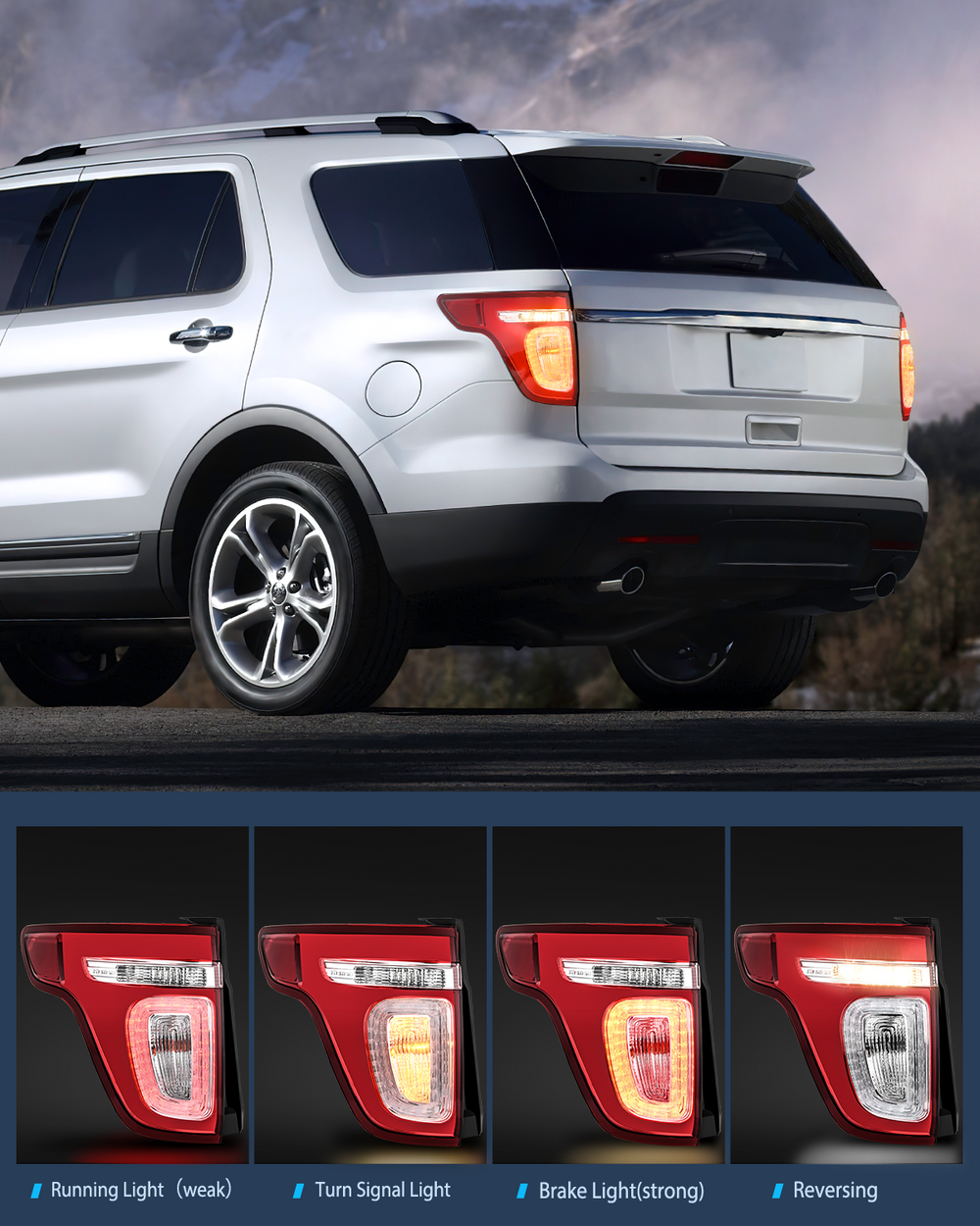 - DOT Compliance and safe Driving: To ensure driving safety for you and the oncoming driving circumstance, our 2011-2015 Ford Explorer taillight are DOT & SAE compliant. Taillight will upgrade your lighting, making your vehicle easier to see for other drivers and passengers.