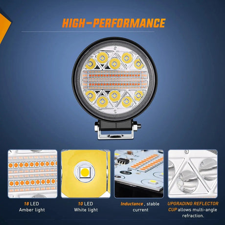 $36.99Unit price /Unavailable4.5 Inch 27W Amber White Round Spot Flood LED Work Lights (Pair) | 16AWG DT Wire