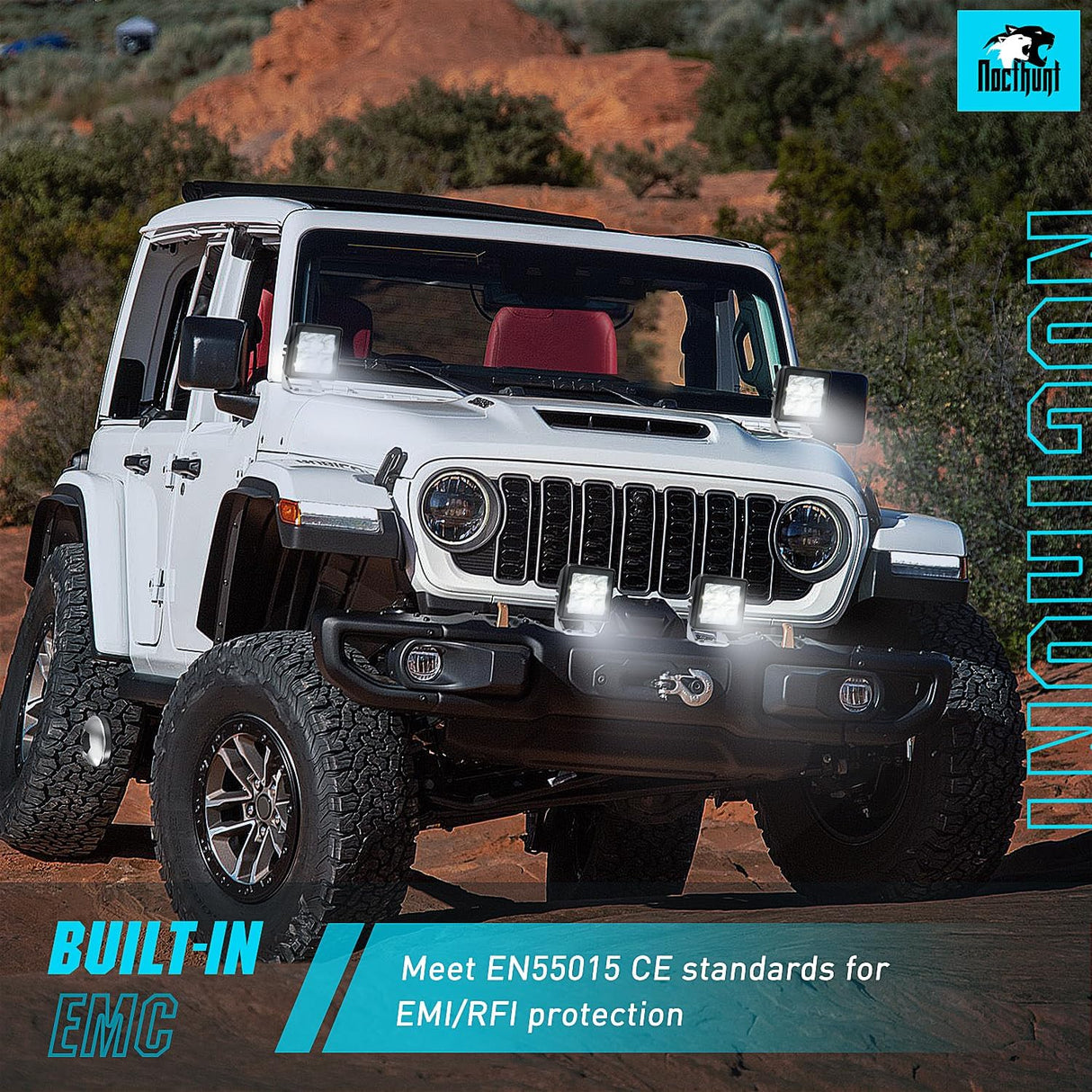 - Safety EMI/RFI Protection: This light pods are built-in EMC that meets EN55015 CE standards, limiting the generation of EMI/RFI interference. Provides better protection for both internal electronic components in lighting and also external objects like a radio receiver