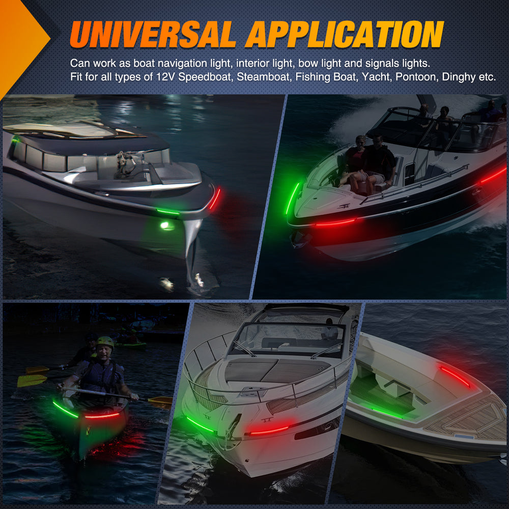 - Minimalism Design: These new LED boat navigation lights include one 13 inch red and one 13 inch green LED strip. More stylish and effective design standard makes Pole Style navigation lights