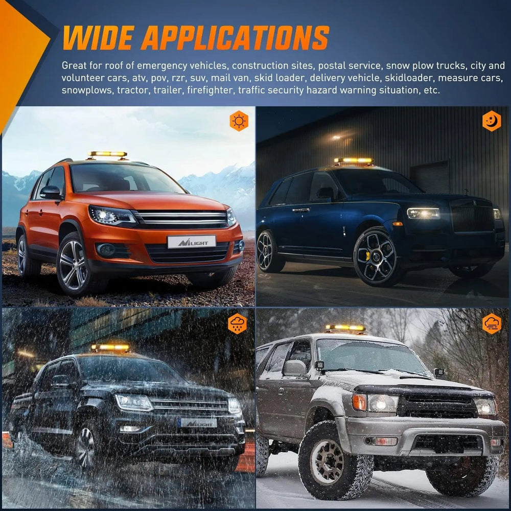 - COB Design For Wide 360° Coverage: Front and back total of 4 COB and two side total have 8 LEDs. The specific COB LED is designed to uniform light display, a wider 360 coverage viewing angle than a normal Led lights bar, increased visibility, and enhanced driving security.