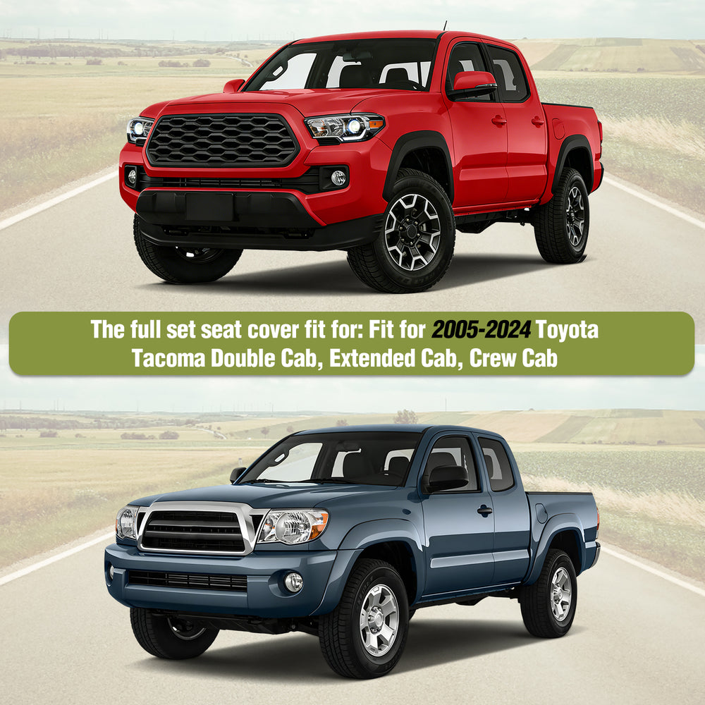 - Applicable Models: Includes front seats and rear seats, full set seat covers fit for 2005-2024 Toyota Tacoma Double Cab Extended Cab Crew Cab. Please note that the centre console is not included. Rear seat applicable to 40/60 split bench