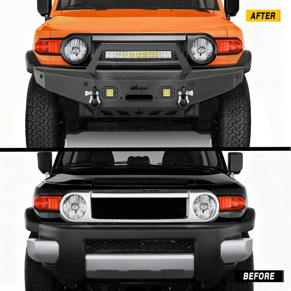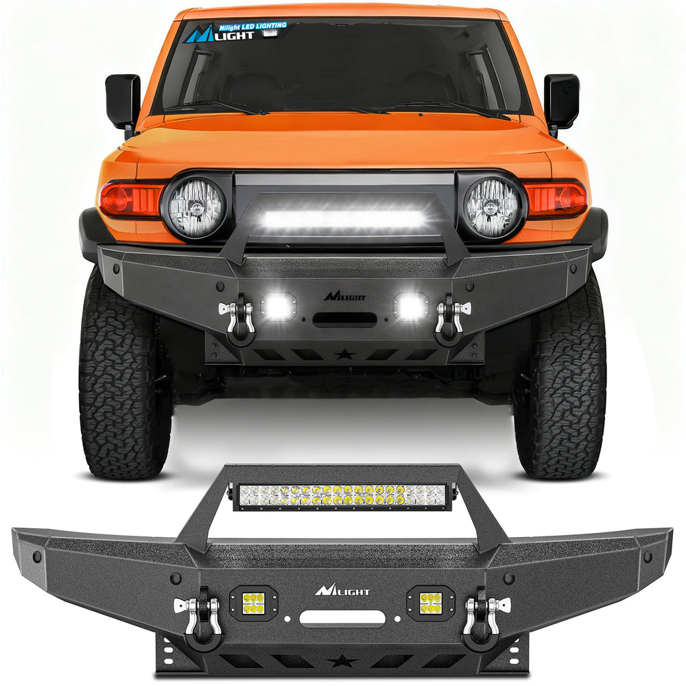 2007 2008 2009 2010 2011 2012 2013 2014 Toyota FJ Cruiser Front Bumper Winch Plate Offroad 120W Light Bar 18W LED Light Pods 2 D-Rings