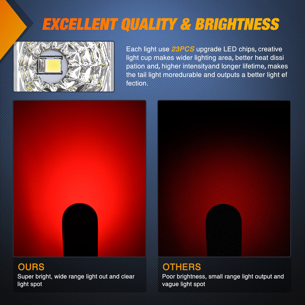 - Brightness & Safety: Each light uses 23PCS quality LEDs to output excellent bright light. Also, adopt a specially designed polycarbonate lens to reflect direct light, and ensure better visibility and safety at night