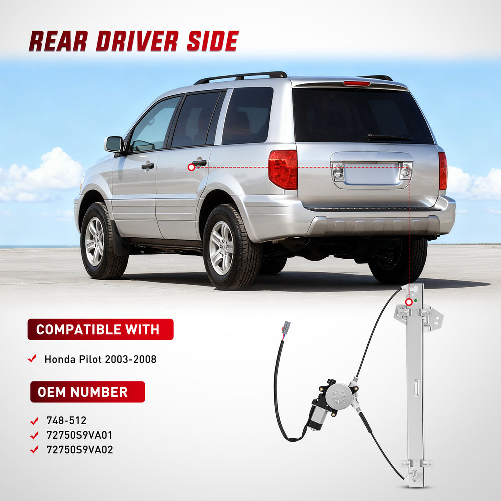 748-512 Power Window Regulator and Motor Assembly Rear Driver Side, OE Replacement for Honda Pilot 2003 2004 2005 2006 2007 2008