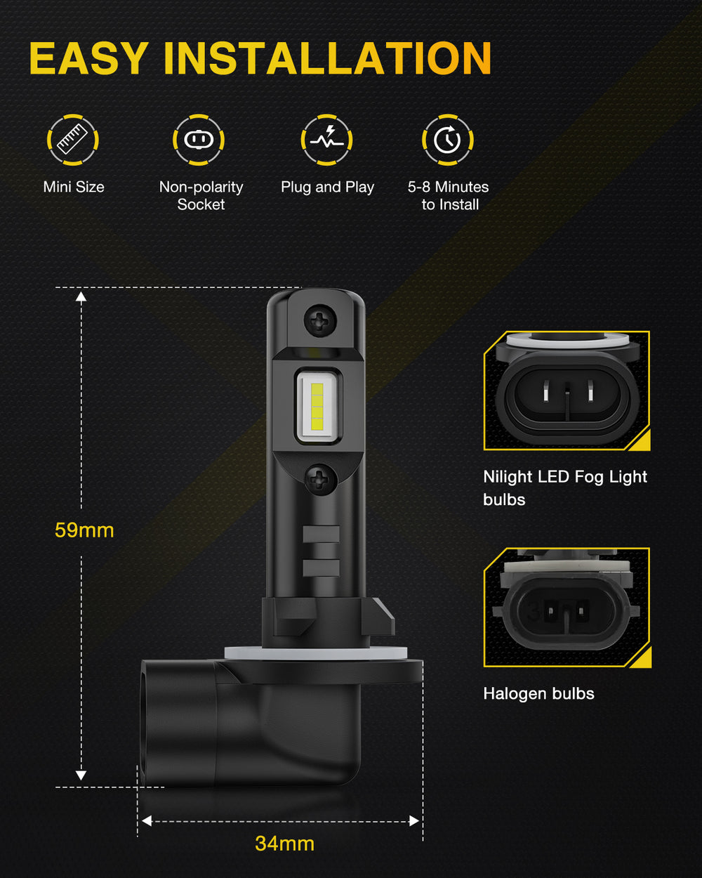 • Compatible, Fits Well For 99% Vehicles: Nilight 881 led fog light bulbs work with 99% of vehicle's computer system without error, some sensitive computer vehicles maybe need CANbus decoder to avoid flicking.