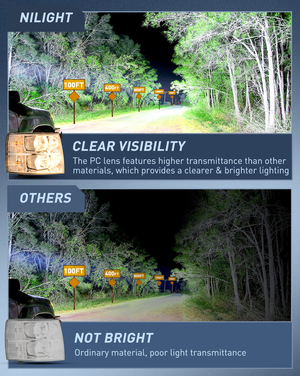 - Increases visibility of road markings, traffic signs, and wild animal