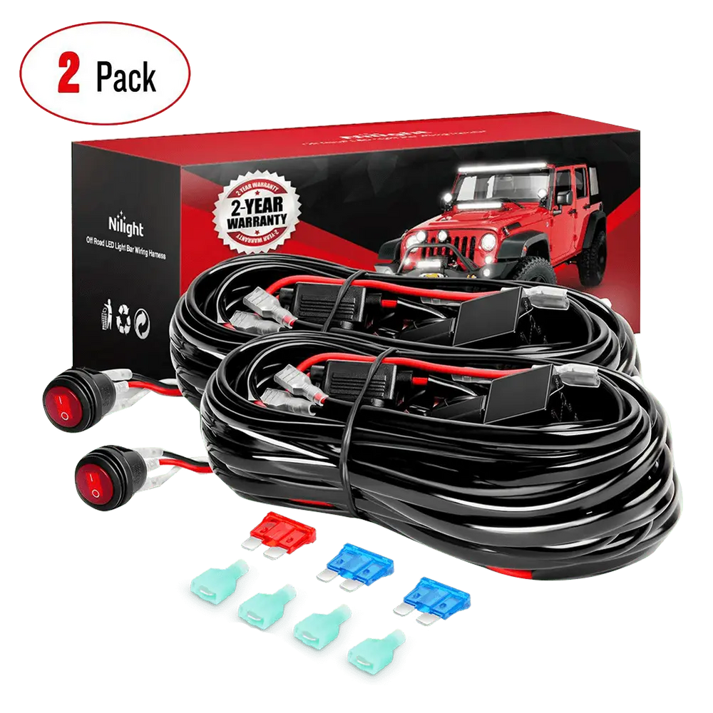 2PCS 16AWG LED Light Bar Wiring Harness Kit - 2 Leads 12V On Off Switch Power Relay Blade Fuse for Off Road Lights LED Work Light, 2 Years Warranty