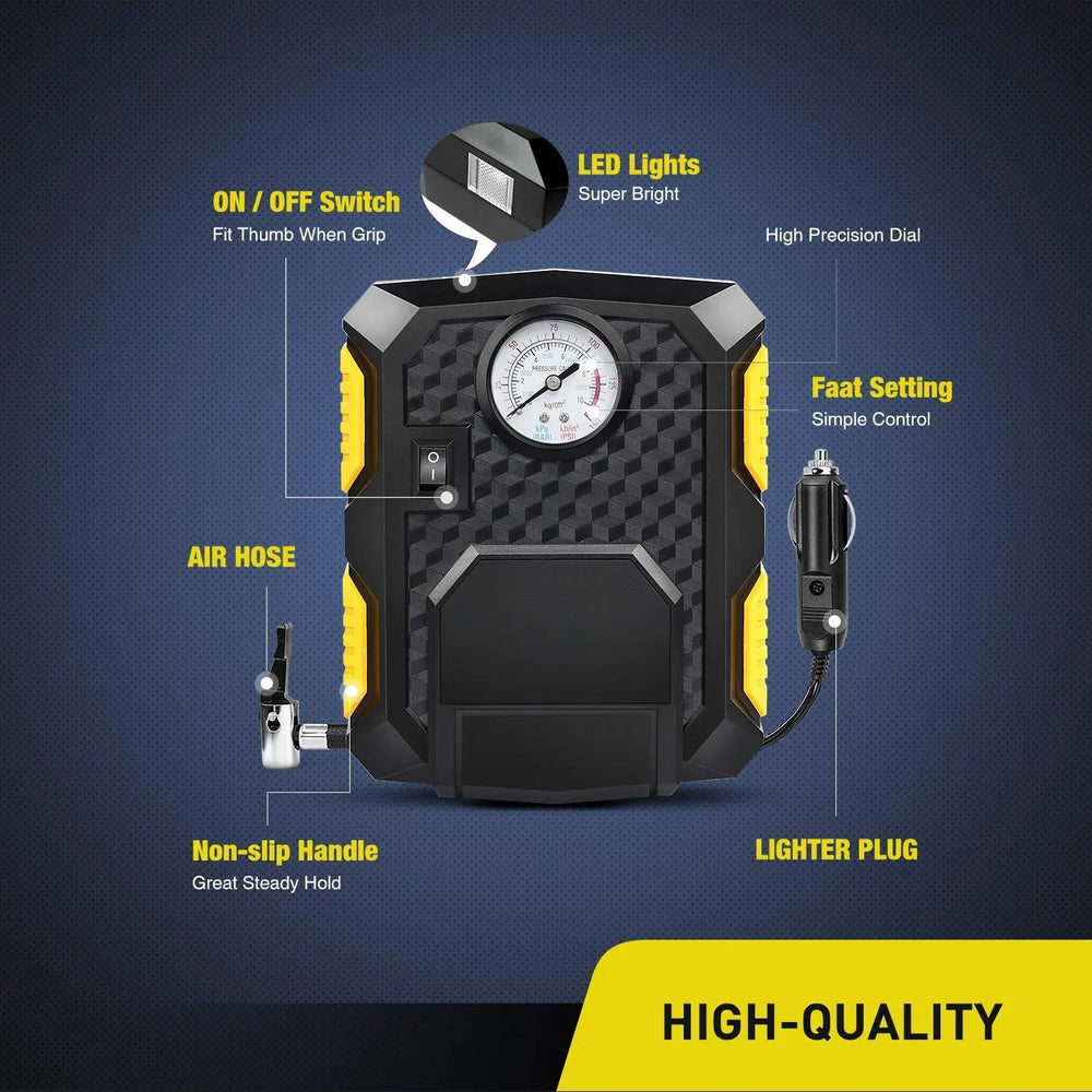 Super Bright LED Light-- It comes with a built-in bright and long-lasting LED light, which keeps you safe in an emergency such as on a dark lonely country road by allowing you to see what you’re doing as you pump air in your tires