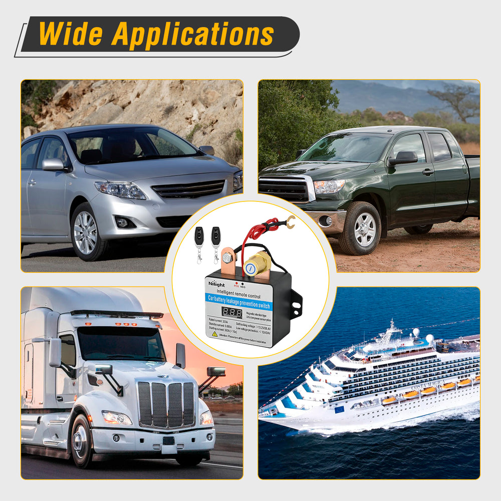 - Product Specification: Rating for 360A 12V /24V, heavy duty design remote control switch, effectively enhances the reliability when use.Perfect for Various Automotive vehicles such as cars, trucks, boats, RVs etc