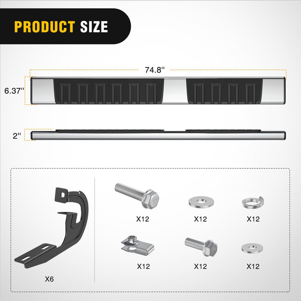 - PACKAGE INCLUDED:2 x running boards (Driver & Passenger Side), 1 pack of accessories & 1 x instruction manual