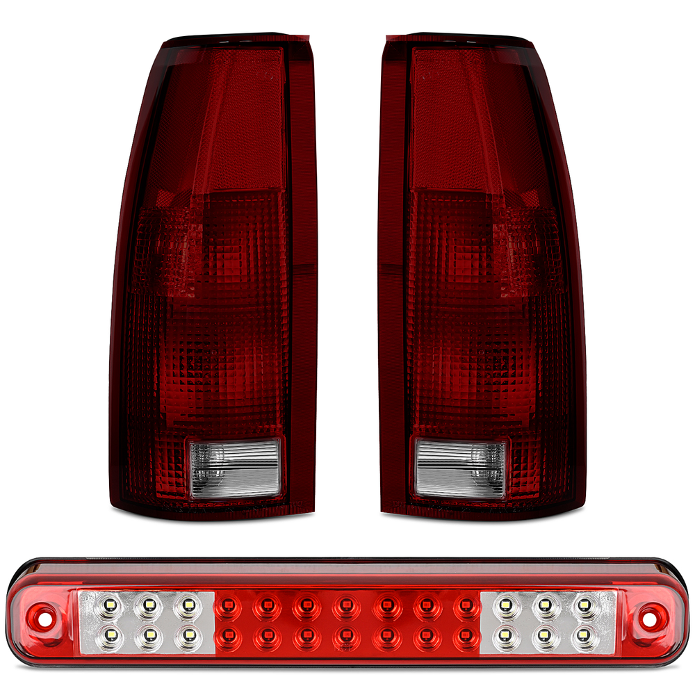 Tail light + 3rd Third Brake Light Assembly Compatible with 1988 1989 1990 1991 1992 1993 1994 1995 1996 1997 1998 1999 Chevy GMC C/K Silverado 1992 1993 Blazer Dark Red Rear Cargo Lamp