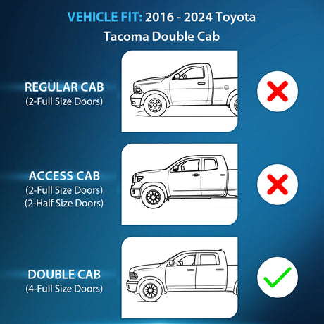 2016 2017 2018 2019 2020 2021 2022 2023 Toyota Tacoma Double Cab Rain Guards Acrylic 4Pcs