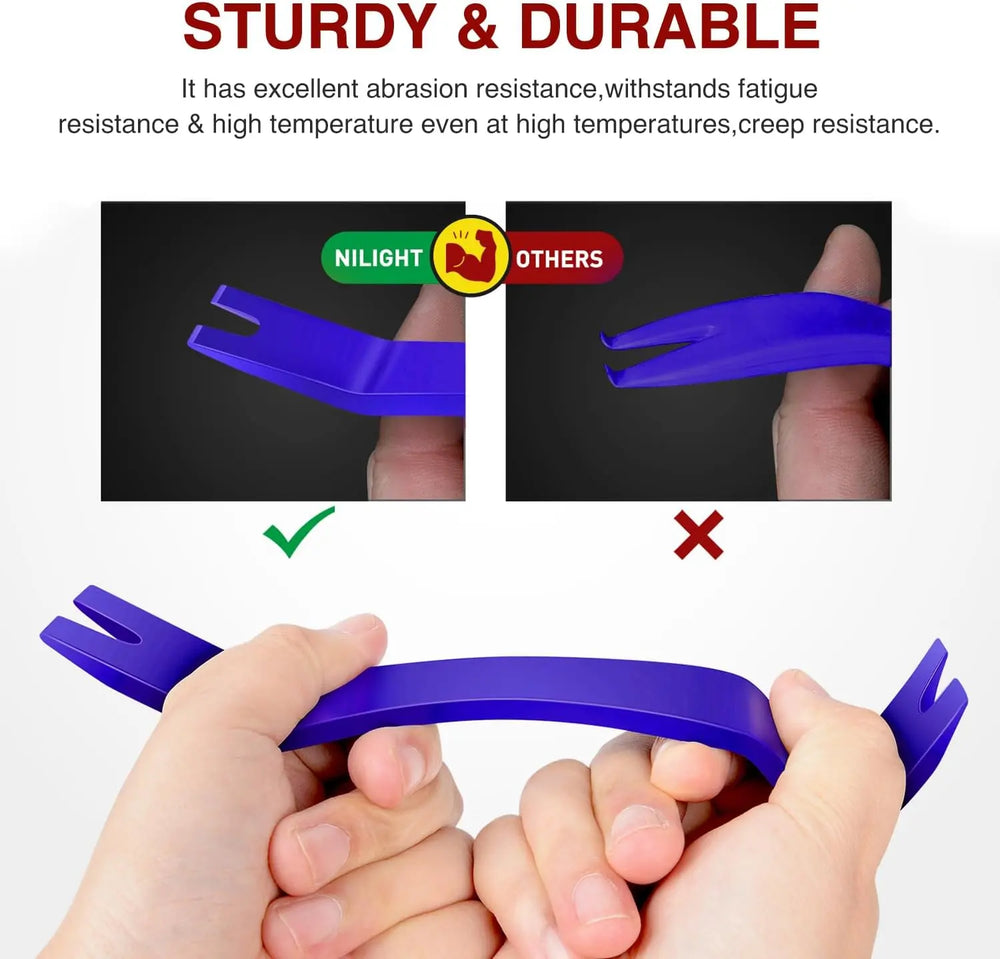 - Multi-purpose Usage: Nilight car trimming removal toolset consists of 40pcs different tools, excellent for Automotive, Marine, Furniture or Aircraft Trim removal and installation, including Door Panels, Moldings, Window Trims, Clips, Fasteners, Emblems, Panels, Radios, ect.