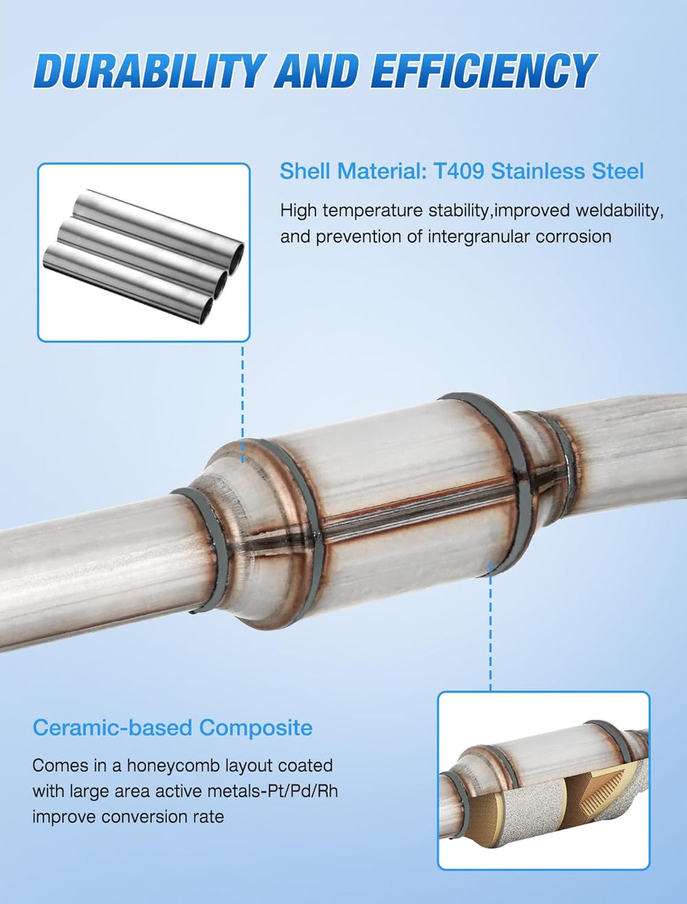 Engineered to meet your vehicle’s specific emissions requirements, never worry about P0420 or P0430 code and keep check engine light off.