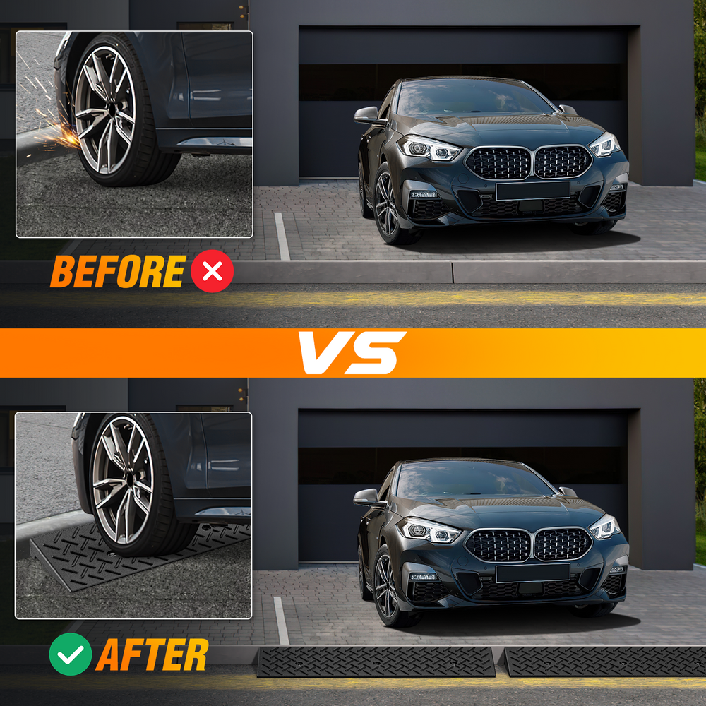 • Widely Use: These rubber curb ramps for driveway help easily navigate thresholds for cars, bicycles, wheelchairs, trailers, lawn mowers and pets. Perfect for driveways, garages, loading docks, warehouses, barns and doorway transitions