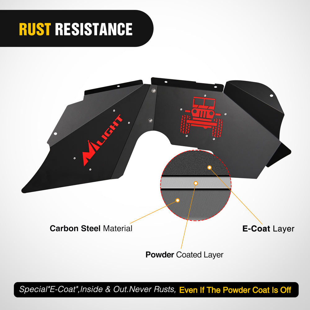 - Fitment: Nilight inner fender guards are compatible with 2007-2018 Wrangler JK & JKU (4-Door/2-Door)