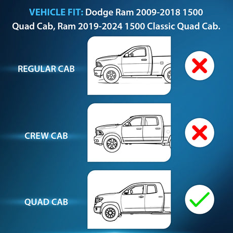 2009 2010 2011 2012 2013 2014 2015 2016 2017 2018 Dodge Ram 1500 Quad Cab Rain Guards Acrylic 4Pcs