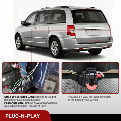 4 Pin Trailer Wiring Harness Kit 56331 for2011 2012 2013 2014 2015 2016 2017 2018 2019 2020 Dodge Grand Caravan Chrysler Town & Country Ram C/V