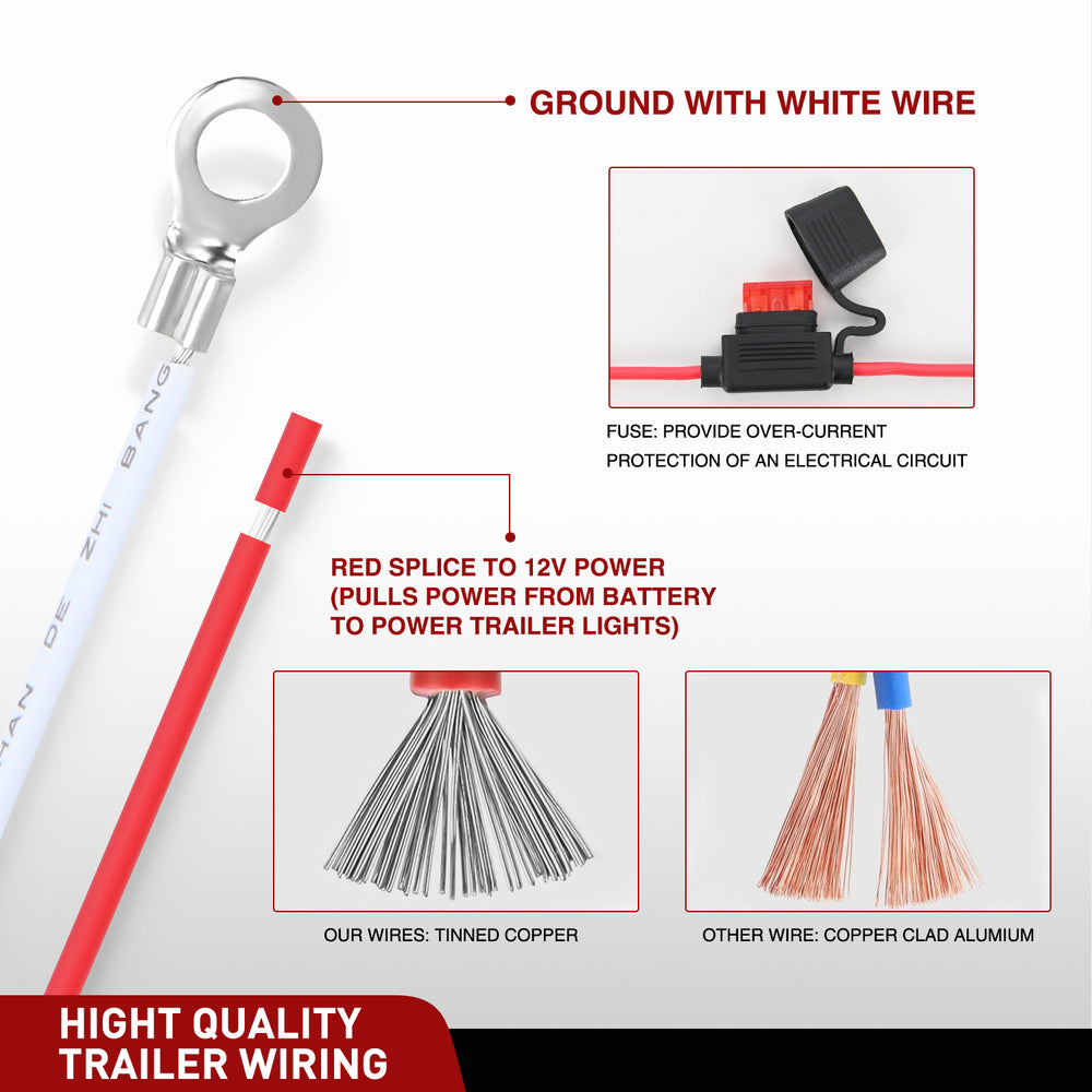 - Package Inclued: Custom 4-Pin Trailer Wiring Harness*1, Zip tie*10,10A Fuse*1, Screw*1, Battery connection wire*1