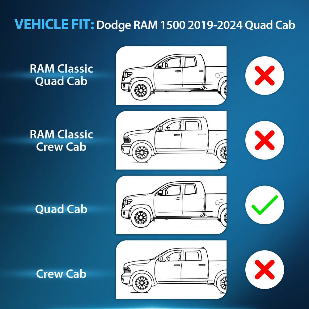 - Fitment: Dodge RAM 1500 2019 2020 2021 2022 2023 2024 Quad Cab