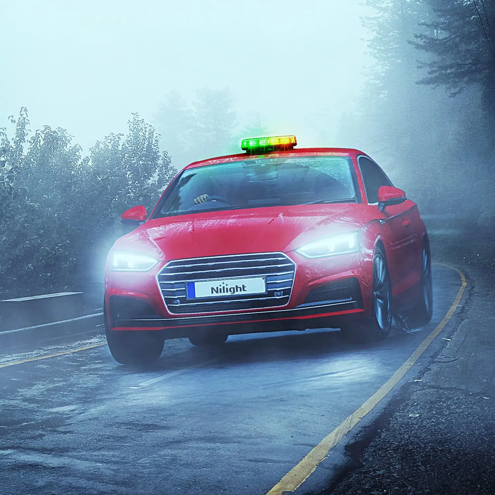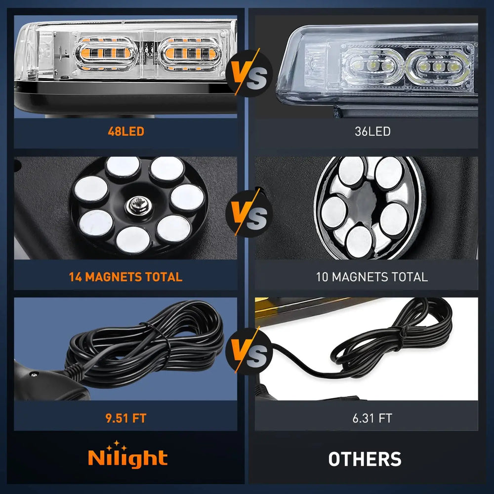 - High visibility: Nilight amber green car roof top strobe light has a total of 48 high-intensity Led chips. provided maximum illuminate coverage and be visible from greater distance. Visible in daylight, midnight, rainy, foggy or snow days.