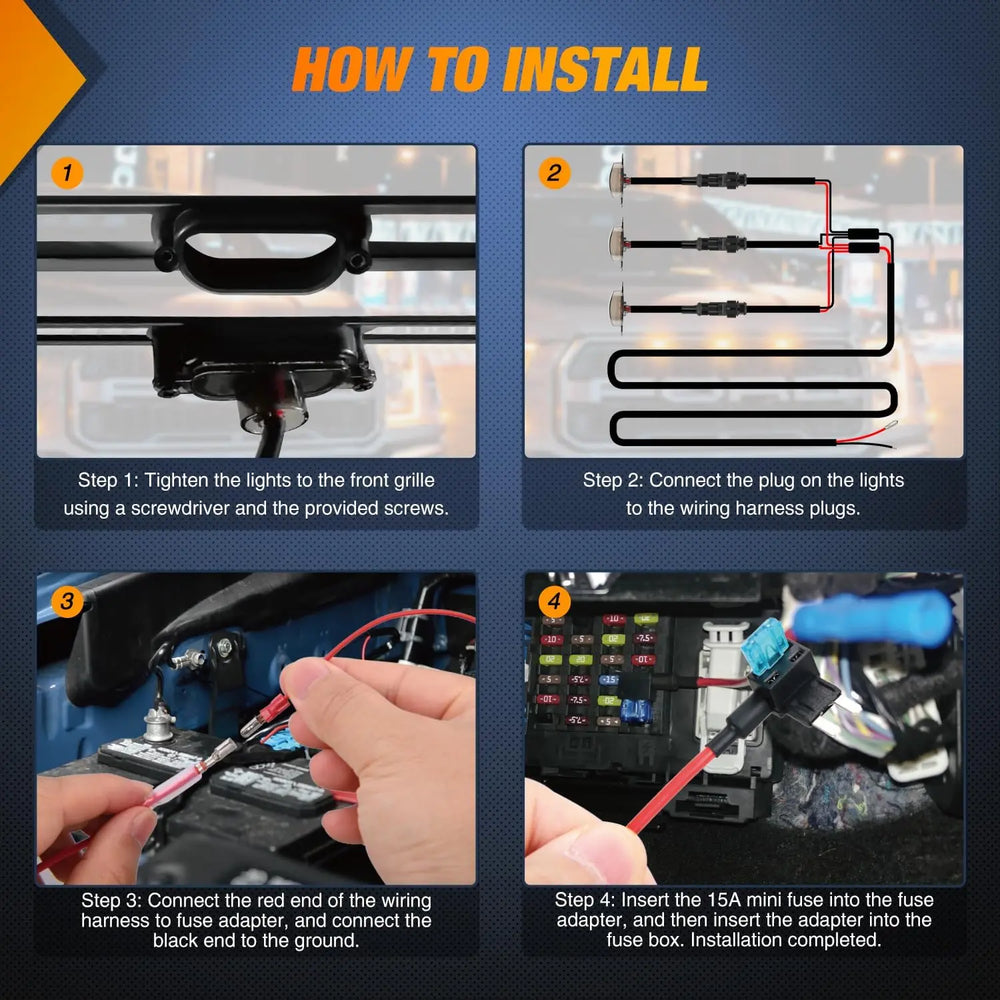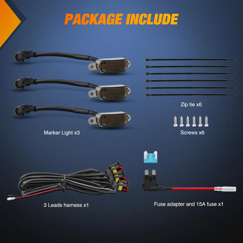 - Package Included: Come with 3pcs marker light, 3leads harness, 6pcs screws, 6pcs zip tie and fuse adapter with 15A fuse. 2 Years Warranty Honored by Nilight