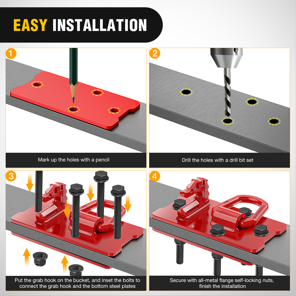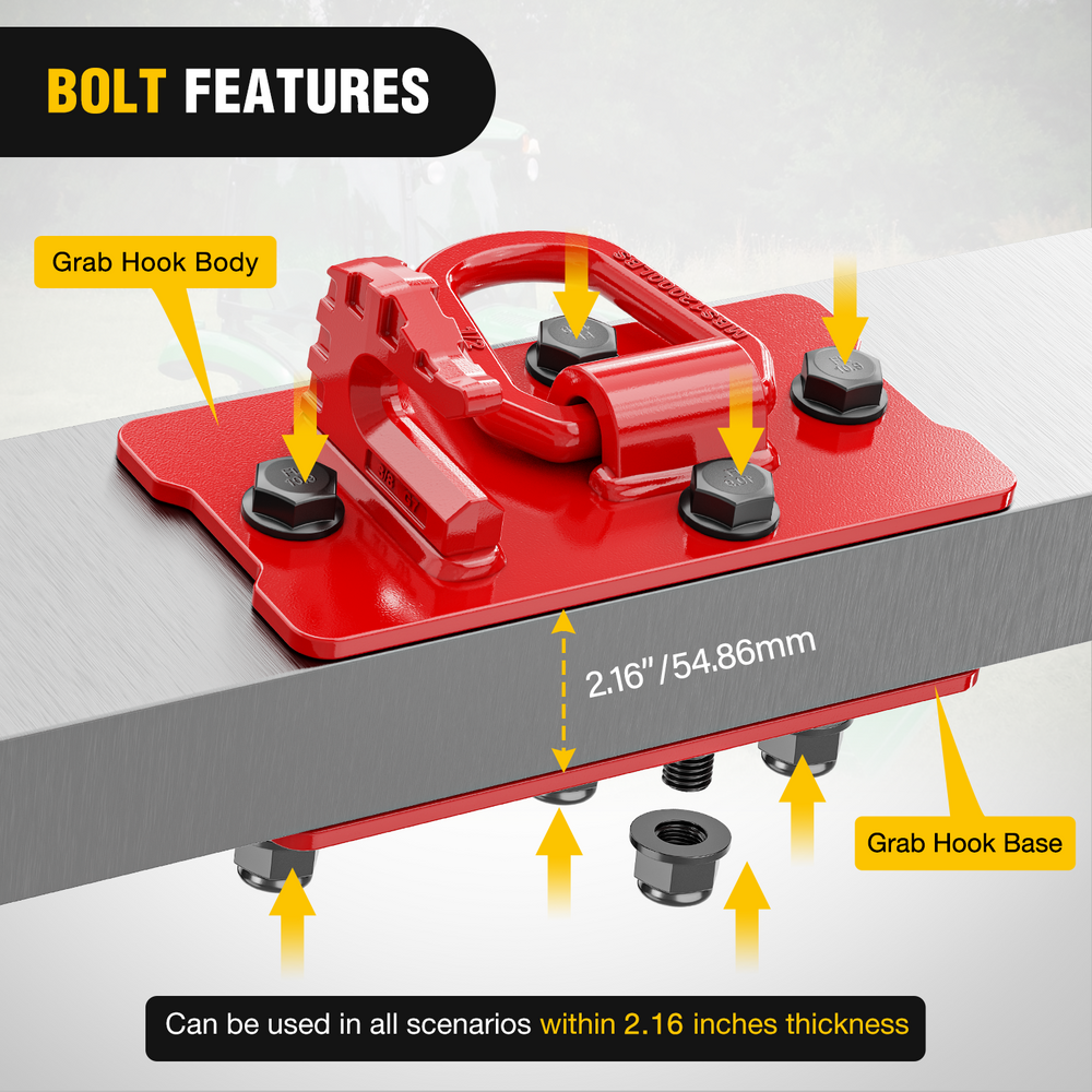 - Easy Installation: Bolt-on Grab Hook coming with complete hardware for Installation, you can fix the grab hook on your machine with grade 10.9 locking bolts and lock anti-skid nuts easily