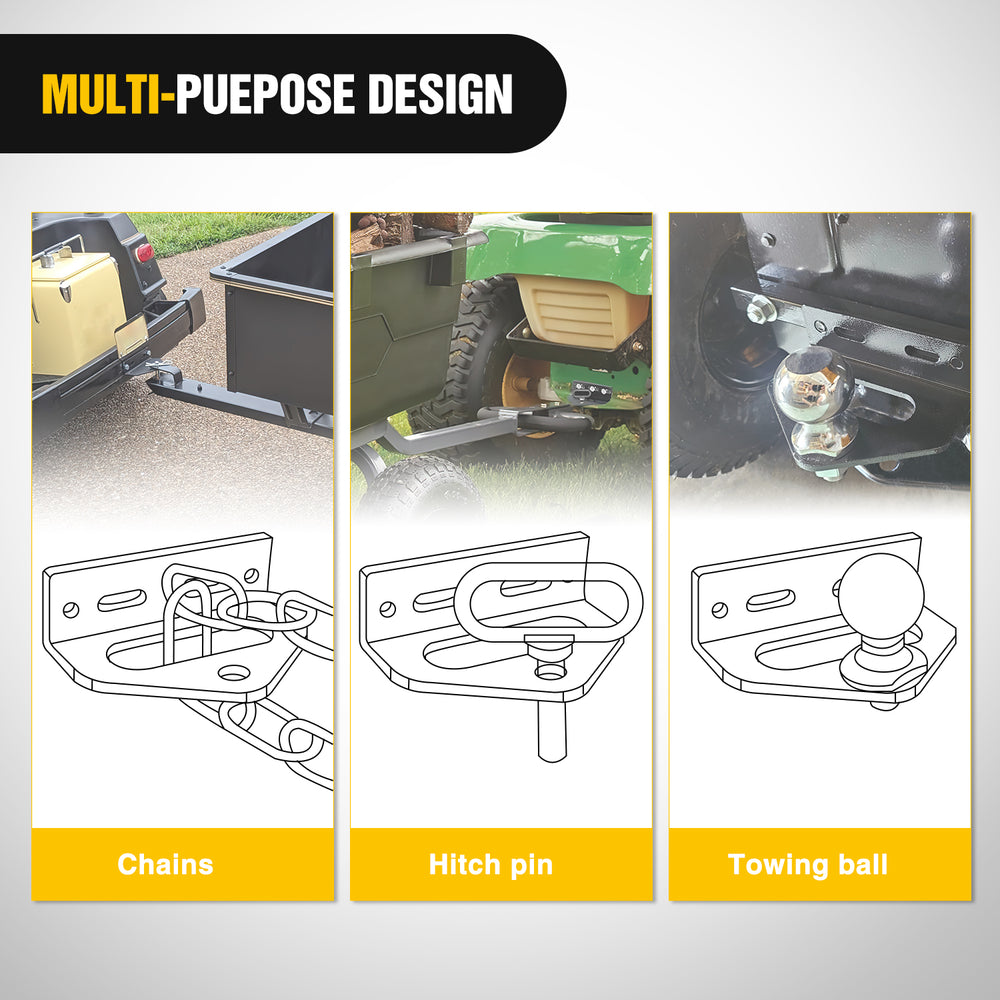 The chain slot can easily attach any straps, ropes, hooks and chains.The 3/4" hitch pin hole can attach magnetic hitch pin or towing ball