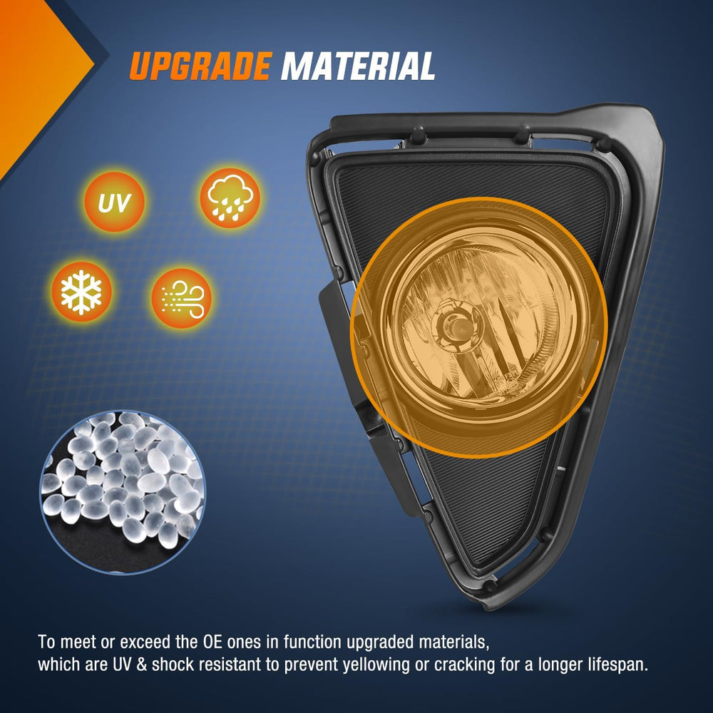 - Tough and Durable: The well-sealed fog light can prevent moisture or dust from entering the inside of fog lights in all weathers, to ensure excellent weather resistance, and impact resistance. The superior glass lens features higher transmittance, UV and heatresistance, and OEM grade housing is designed to withstand all kinds of weather and terrain. Perfect for replacing broken stock fog lights.