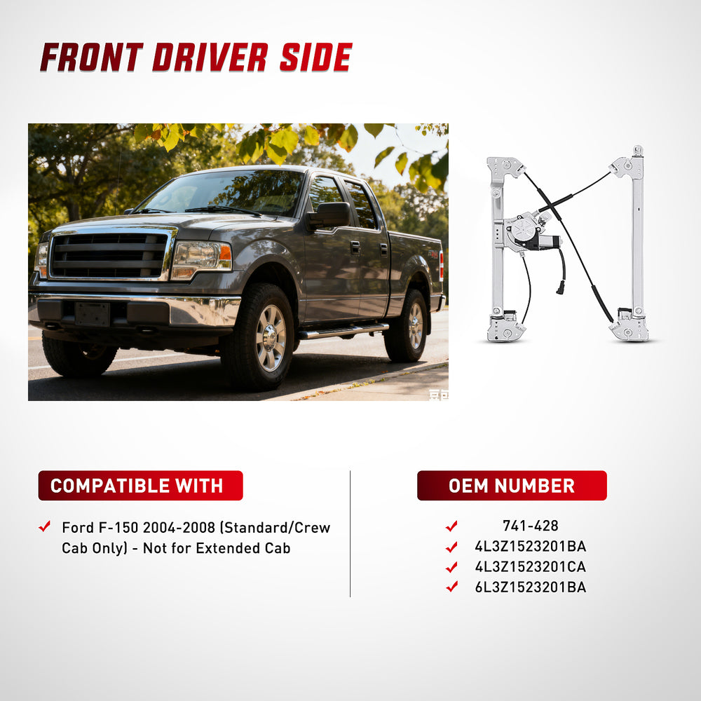2004 2005 2006 2007 2008 Ford F150 Standard/Crew Cab Front Driver Side Power Window Regulator