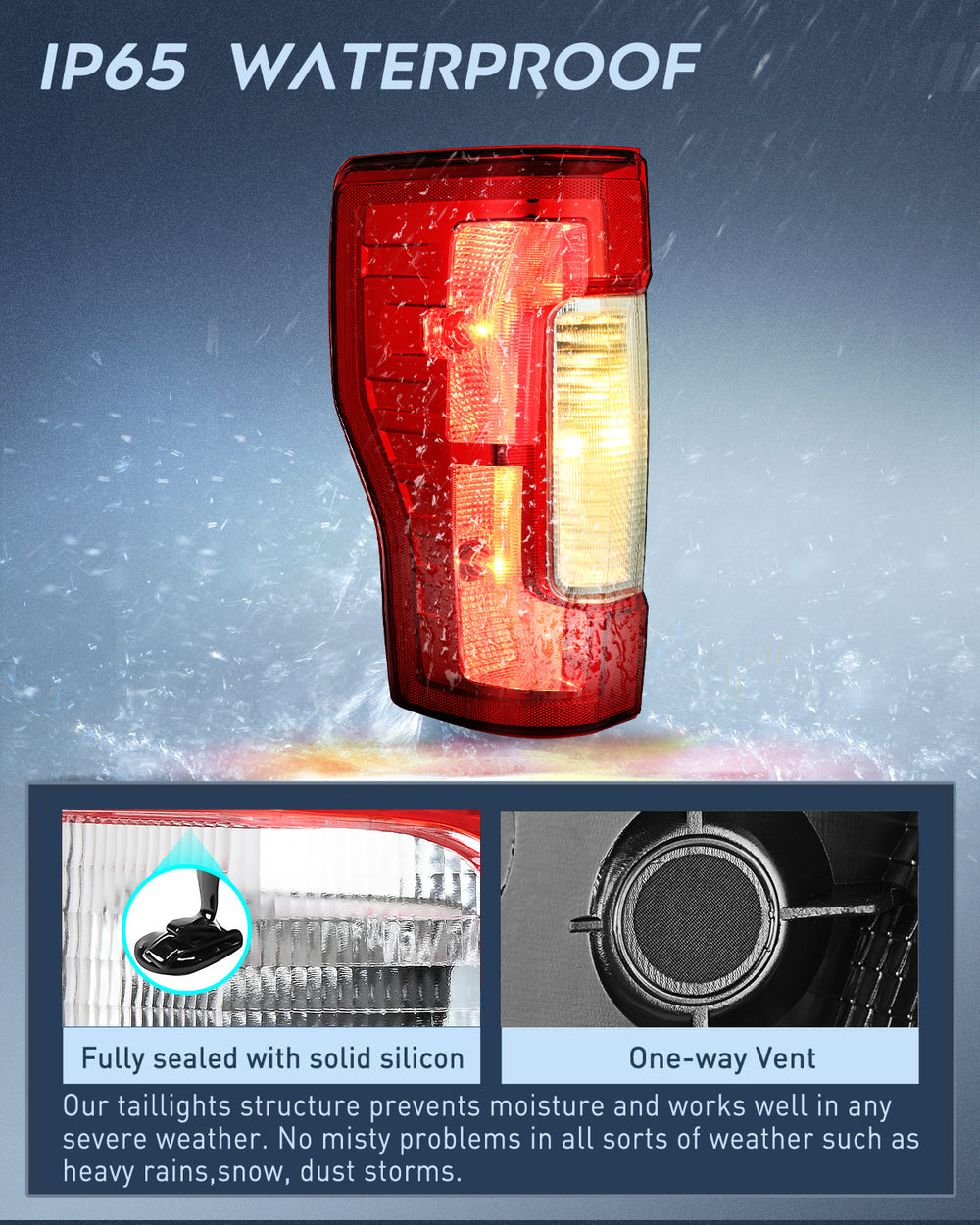 - DOT Compliance and safe Driving: To ensure driving safety for you and the oncoming driving circumstance, our 2017 2018 2019 Ford taillight are DOT & SAE compliant. Taillight will upgrade your lighting, making your vehicle easier to see for other drivers and passengers.
