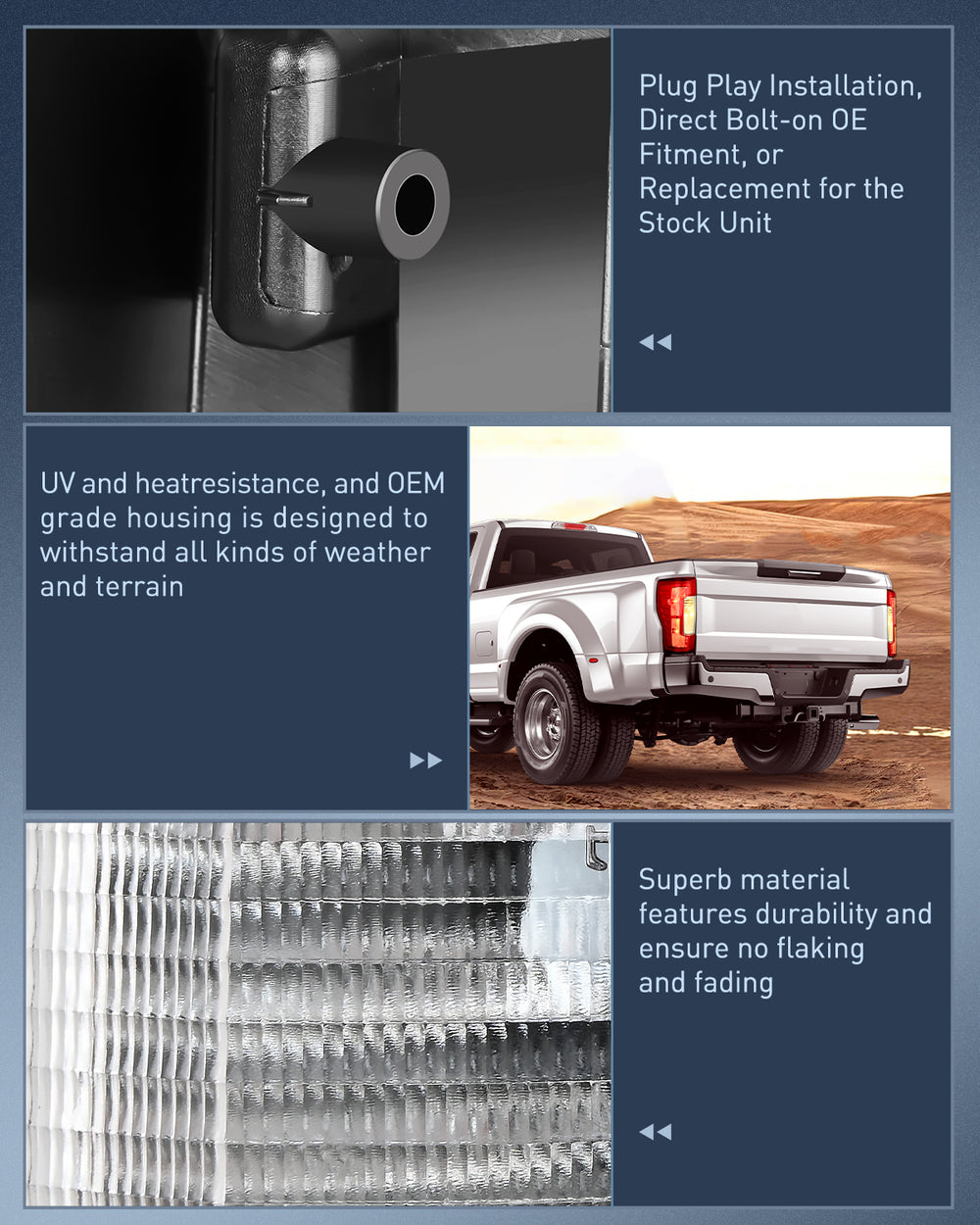 - Simple Installation: Plug-and-play operation, OE taillight socket and replacement for the stock taillight, easily for installation without any drilling or modification. (NOTE: Professional installation would be highly recommended)
