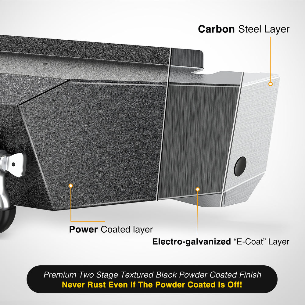 Two-stage textured black powder coating finish and laser welding procedure, better prevent rust and ensure long-lasting durability.