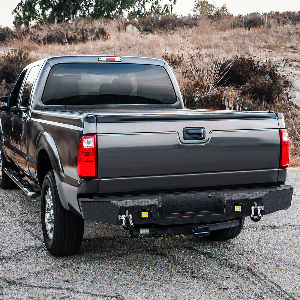 Rear Step Bumper Compatible with 2011 2012 2013 2014 2015 2016 3rd Gen Ford F250 F350 F450 Super Duty Pickup Truck Bumper with LED Lights, Sensor Holes and D-rings