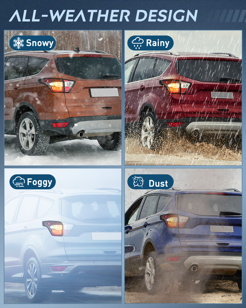 - Durability: The high-impact housing withstands shock and vibration. With fully sealed silicon prevents environmental damages including freezing, foggy, fading, corrosion, and provides reliable service in sorts of weather conditions such as rain, snow, or dust storms, enabling your car looks better and drive safer.