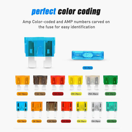 $13.99Unit price /Unavailable120Pcs Standard Blade Fuse Set With 10Pack 14AWG ATC/ATO Inline Fuse Holder