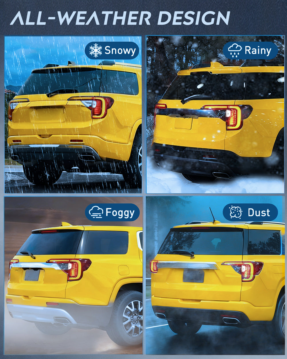- Durability: The high-impact housing withstands shock and vibration. With fully sealed silicon prevents environmental damages including freezing, foggy, fading, corrosion, and provides reliable service in sorts of weather conditions such as rain, snow, or dust storms, enabling your car looks better and drive safer.