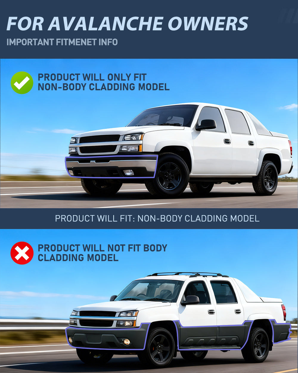 2003-2006 Silverado 1500/1500HD/2500/2500HD/3500; 2007 Silverado Classic; 2003-2006 Chevy Avalanche 1500/2500 (Without Body Cladding). OE#: 2503224; 2520185; 10396913; 15199557.