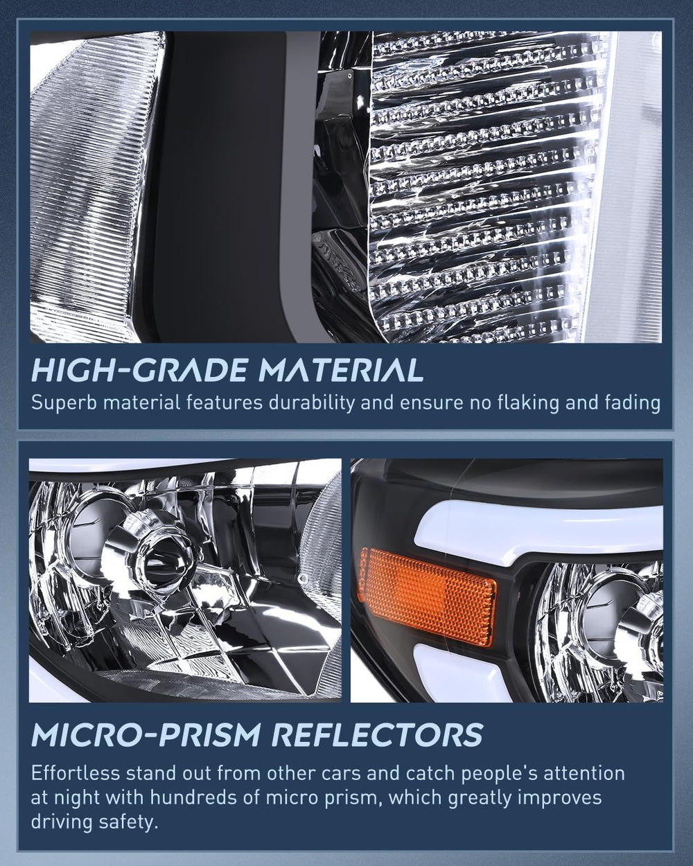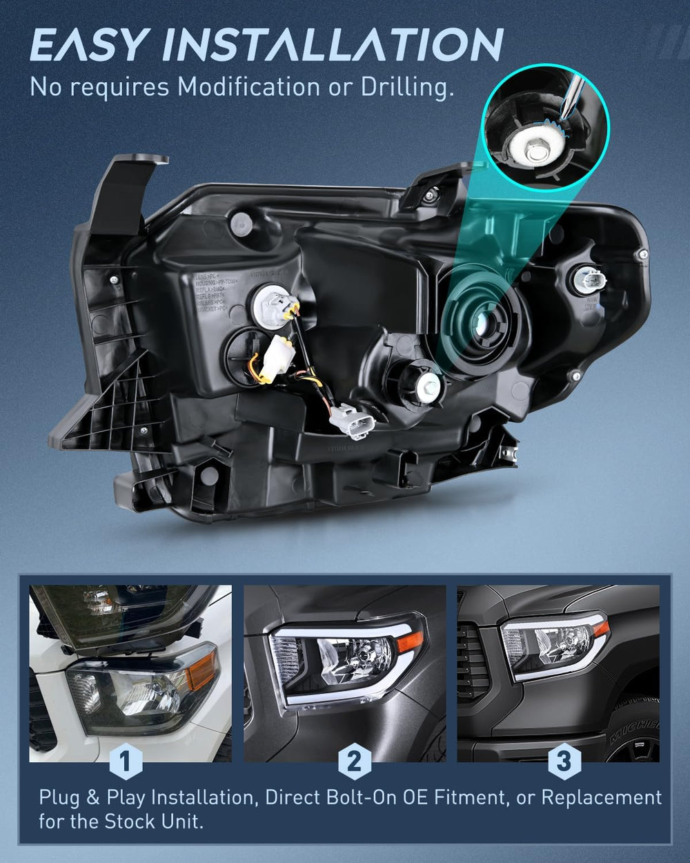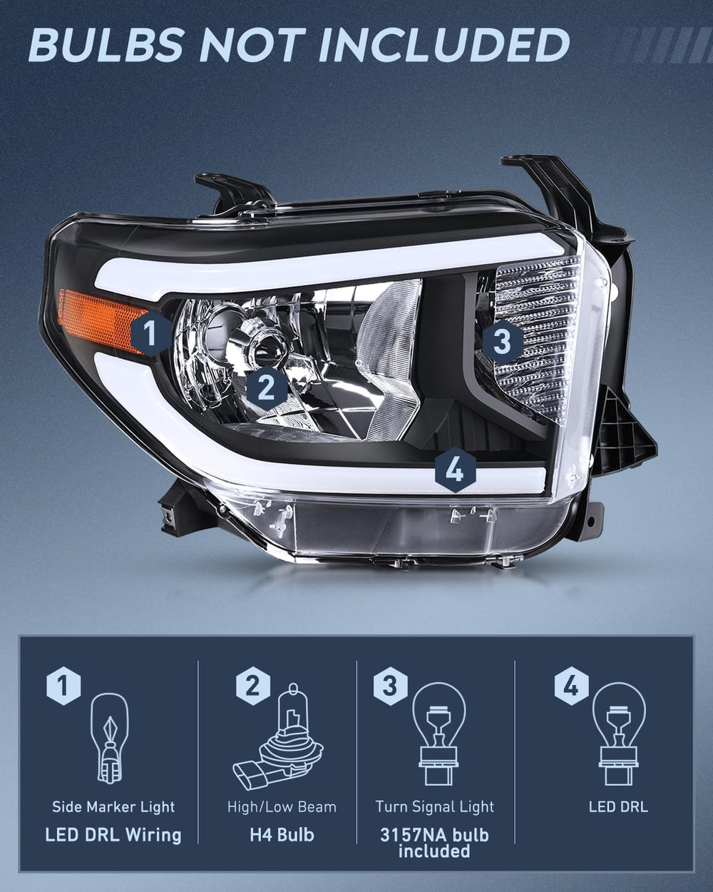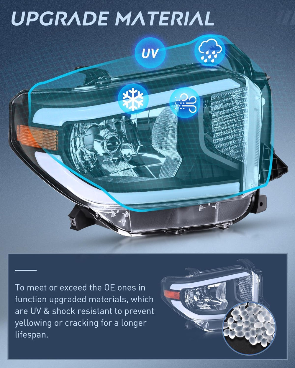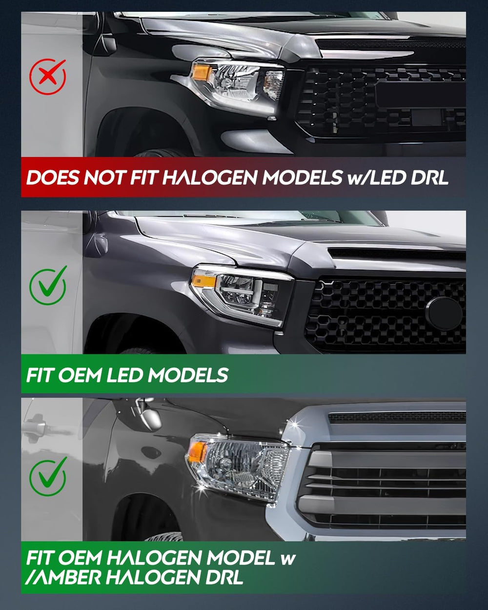 LED DRL Headlight Assembly Compatible with 2014 2015 2016 2017 2018 2019 2020 2021 Toyota Tundra Clean Lens Black Housing Amber Reflector Clear Lens Headlamps Replacement