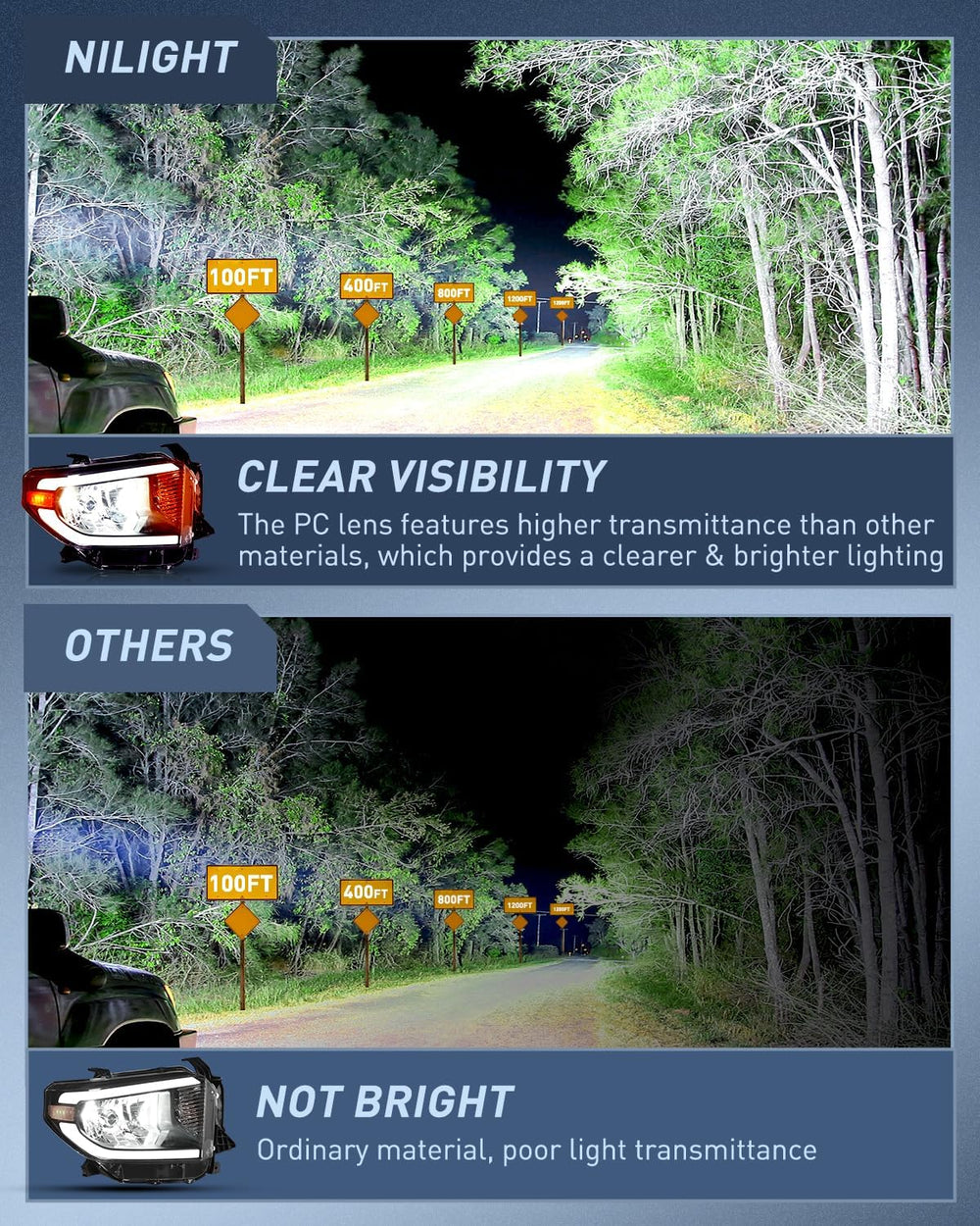 LED DRL Headlight Assembly Compatible with 2014 2015 2016 2017 2018 2019 2020 2021 Toyota Tundra Clean Lens Black Housing Amber Reflector Clear Lens Headlamps Replacement – Nilight